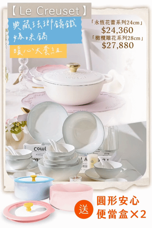 結合 Le Creuset 媽咪鍋、兩個人的饗宴,以及安心便當盒,從烹飪到餐桌,再到外出用餐,每一餐都更美味、精緻、安心。